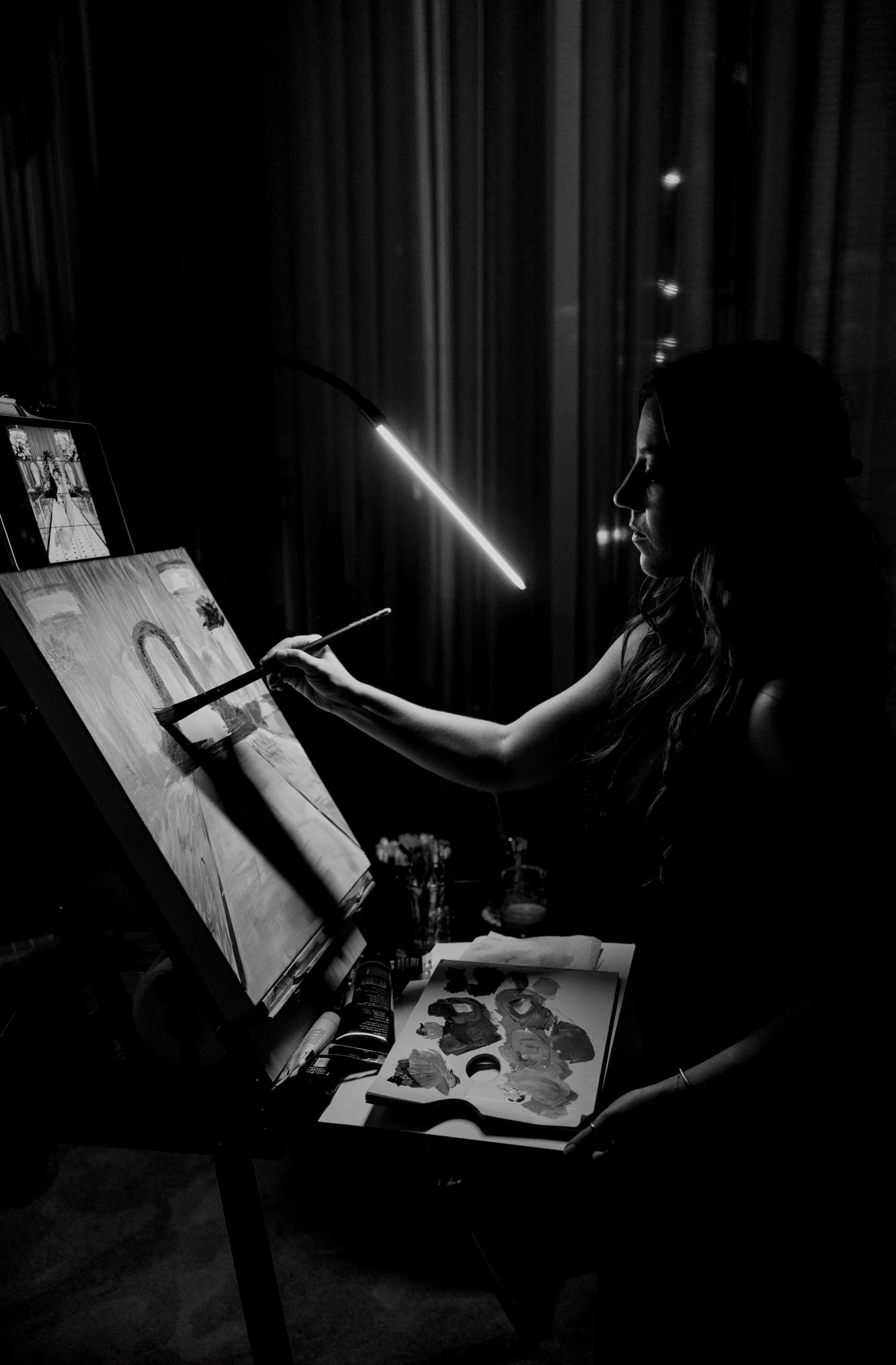 My work is all about storytelling—capturing the energy, emotion, and details of your special day or meaningful moments in a way that feels true to you. Whether I’m painting live at a wedding or creating a custom piece in my studio, my goal is to turn your memorable memories into timeless art! ✨